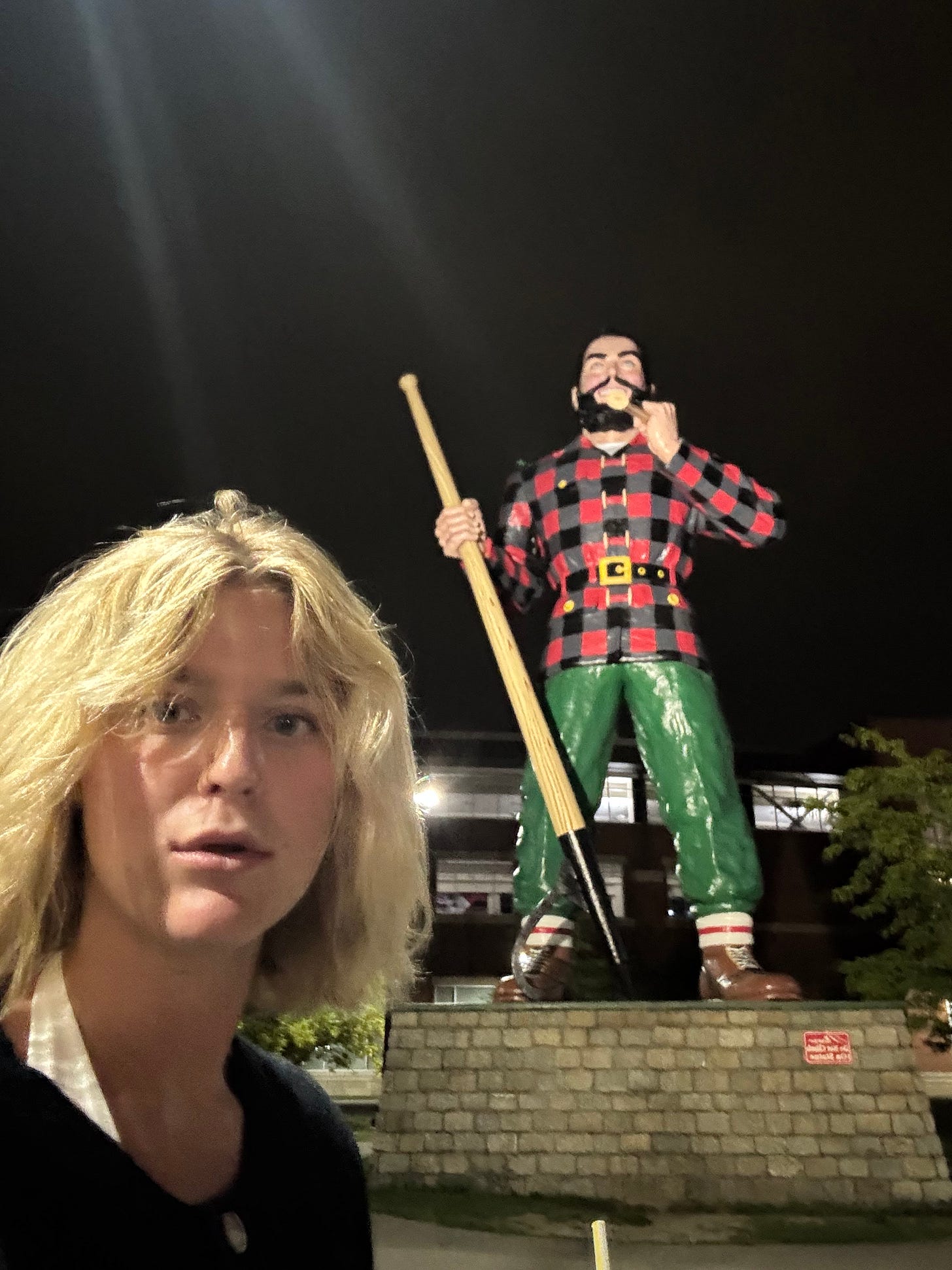 Selfie at the Paul Bunyan statue after seeing Waxahatchee, Sheryl Crow, Bob Dylan, and Willie Nelson at Outlaw Festival. I drank two Allagash Whites and murdered a McDonalds snack wrap afterwards