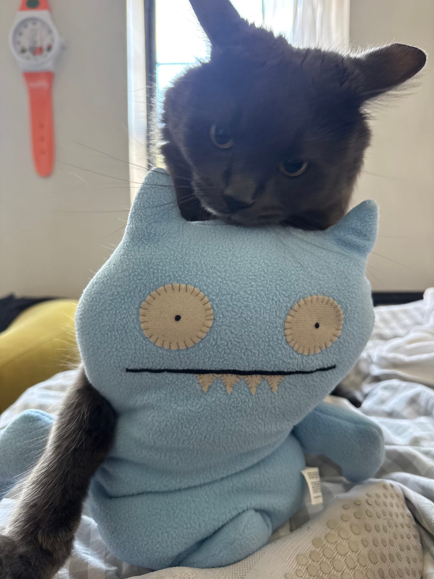 Waking up at 5 AM to feed my cat who will otherwise knock tchotchkes off my bedside table that isn’t by my bedside anymore because when it was he would climb on it and disturb me in the night